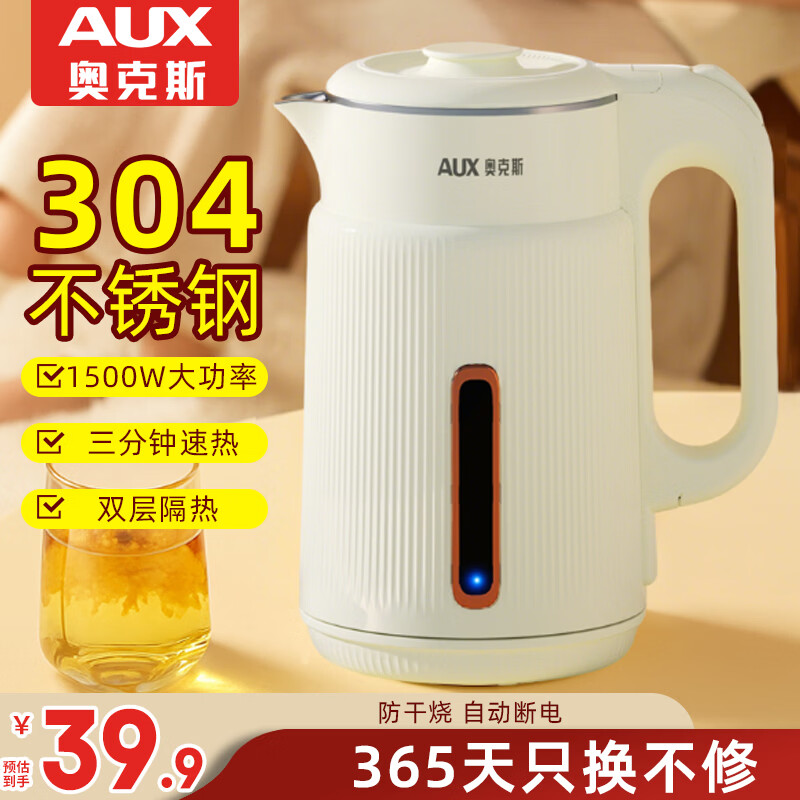 奥克斯 电热水壶大容量1.5L 38.9亓,不锈钢内胆 刚需入 *还有