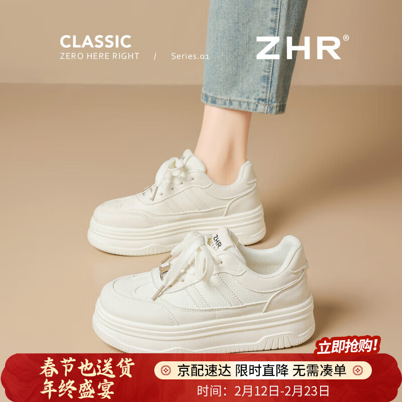 先领100-50补贴券 72.5亓 女厚底防滑小白鞋 72.5亓 女羊