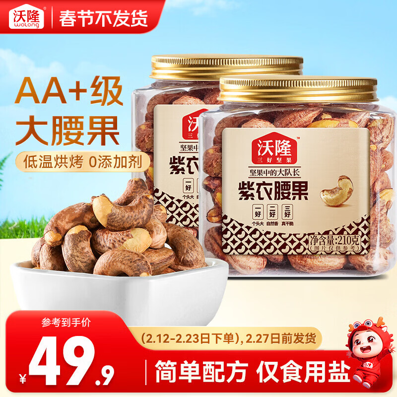 沃隆 坚果紫衣腰果210g*2罐 领 拍 39.9亓,配料干净 初十发货