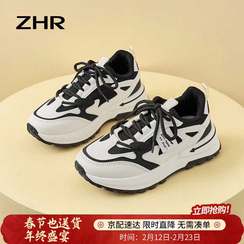 先领100-50补贴券 69亓 女撞色拼接老爹鞋 69亓 女厚底增高小