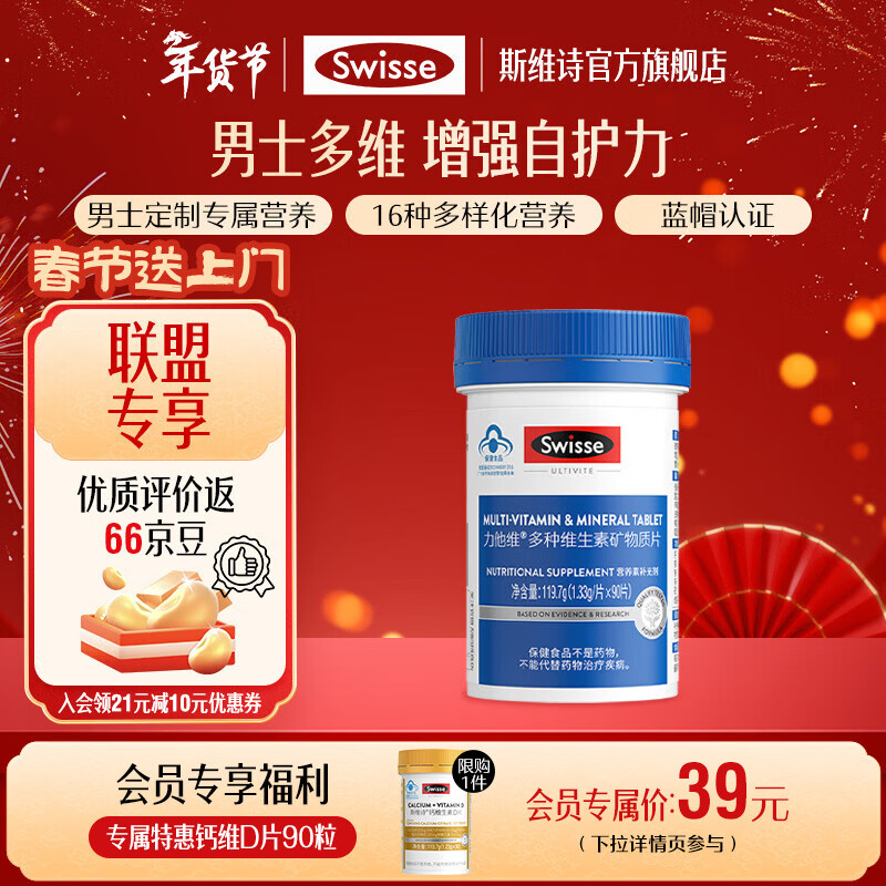 Swisse 男复合维生素片90片 86亓,每日一片 增强免疫力 *还