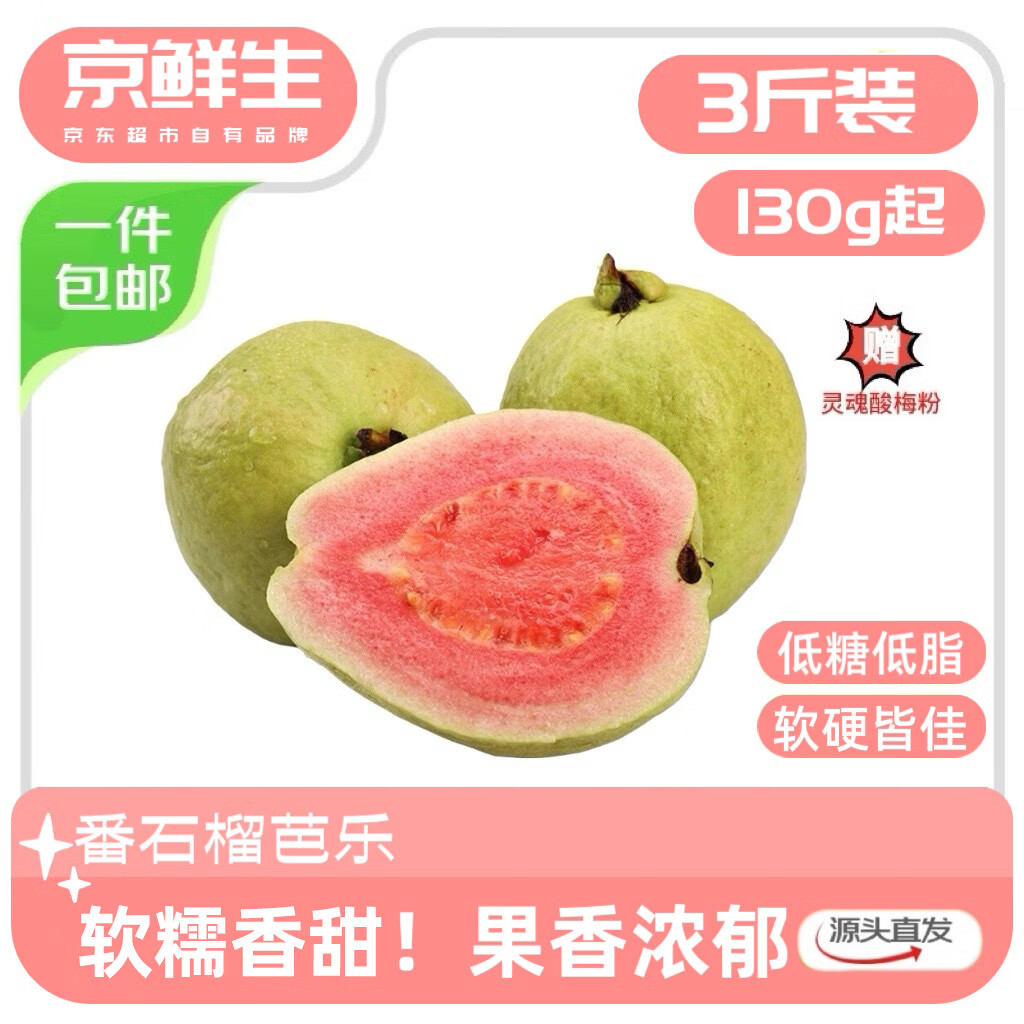 京鲜生 软糯红心芭乐净重3斤 29.8亓自营包邮,单果130g *随单