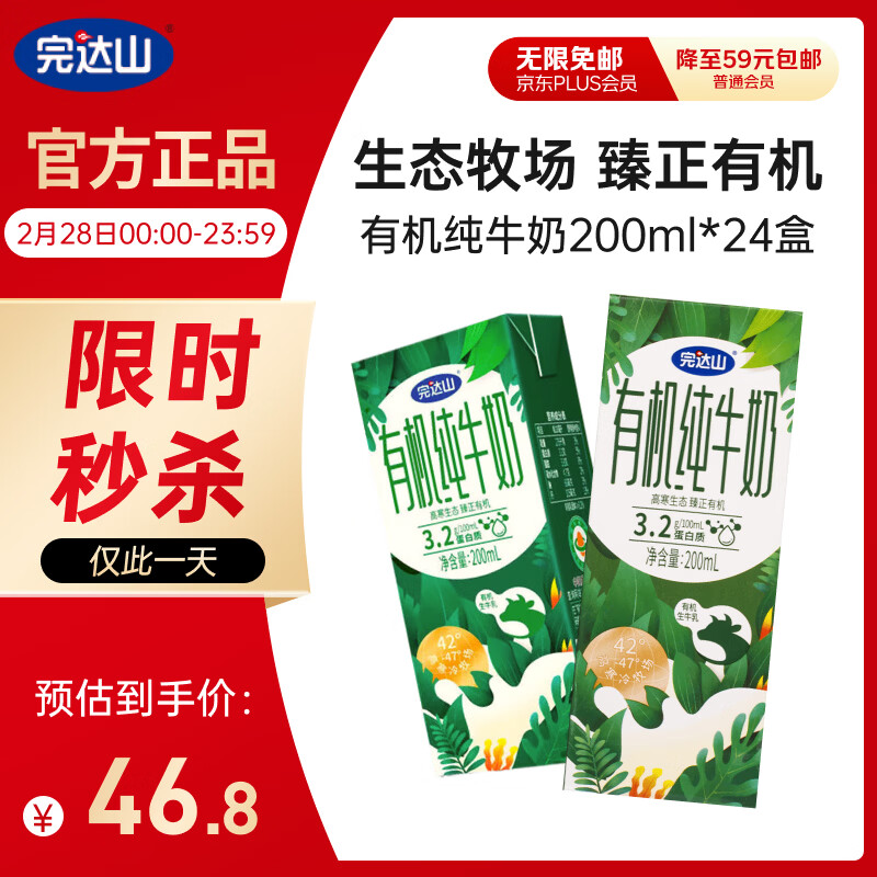 【自营】完达山 有机纯牛奶24盒 46.8亓 运费,Plus无限包邮 *