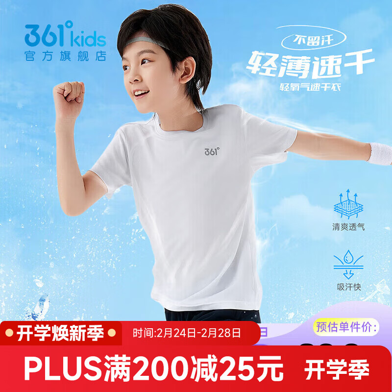 361度 男女童速干短袖T恤 任选2件58.8亓,清爽透气