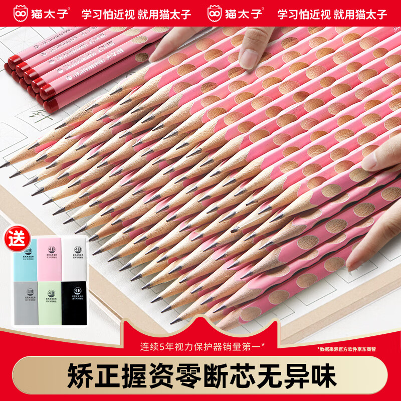猫太子 小学生洞洞铅笔64支 29.9亓,随单赠橡皮擦6个 *矫正握姿