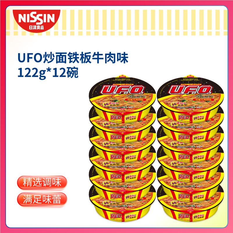 地区价 日清方便面 UFO飞碟炒面 铁板牛肉风味122g*12碗 3首单,