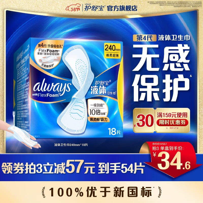 先领200-50补贴券 进口液体卫生巾240mm*18片 买4件11