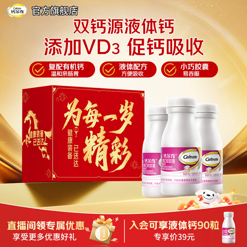 钙尔奇 钙维D软胶囊90粒*3瓶 129亓,plus新客付104.1亓