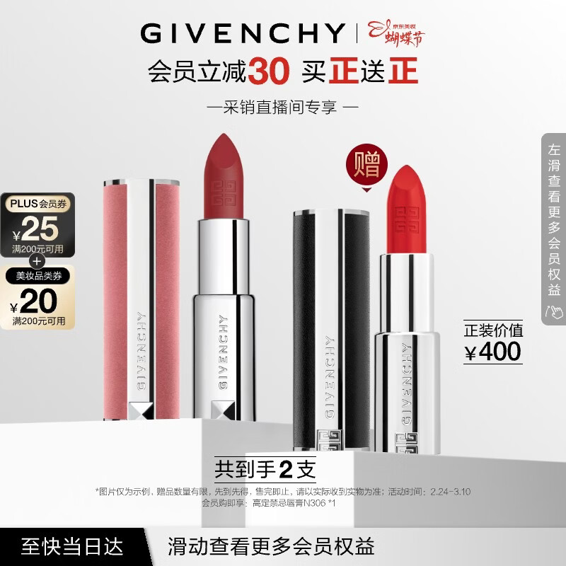 Plus先领2张券 【自营】纪梵希 粉丝绒N27口红 Plus325