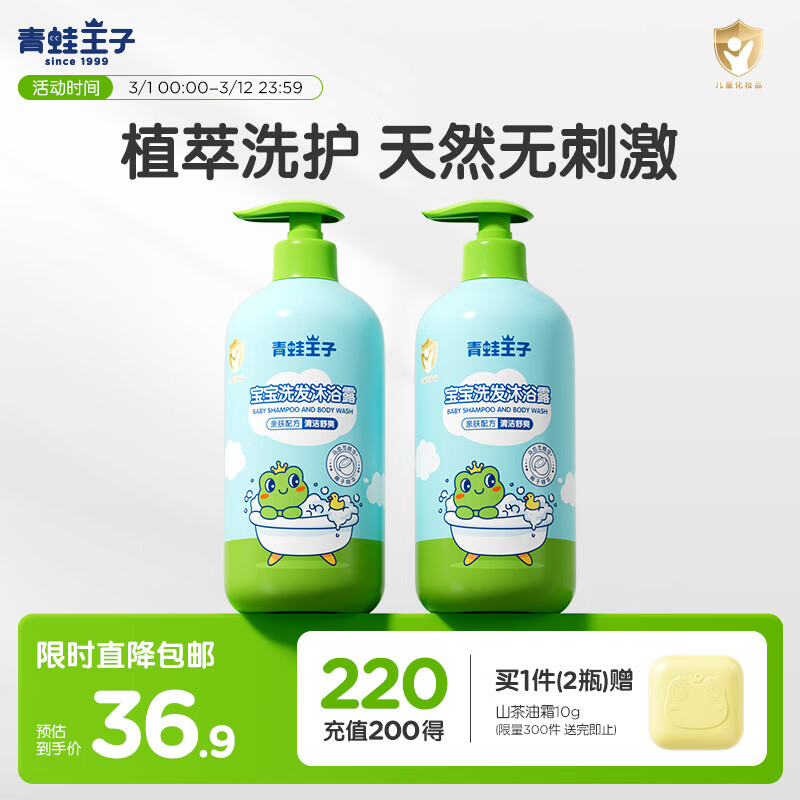 青蛙王子 洗发沐浴1L*2瓶 36.9亓,plus到手实付35亓 *赠面