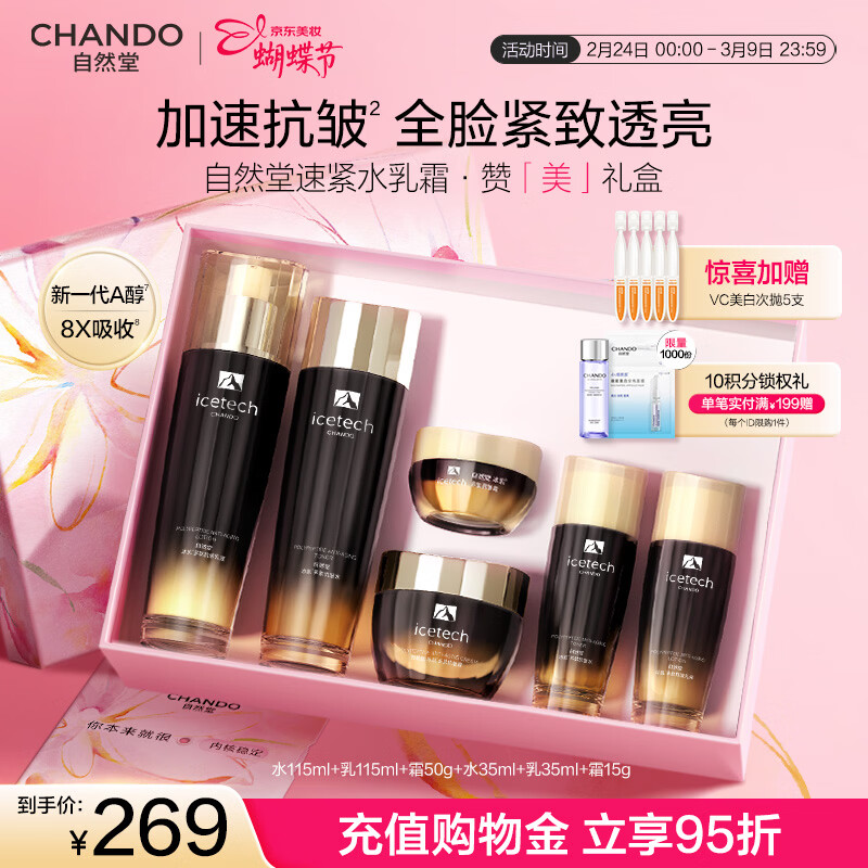 先领299-100补贴券 自然堂 保湿水/乳/面霜3件套 199亓,下