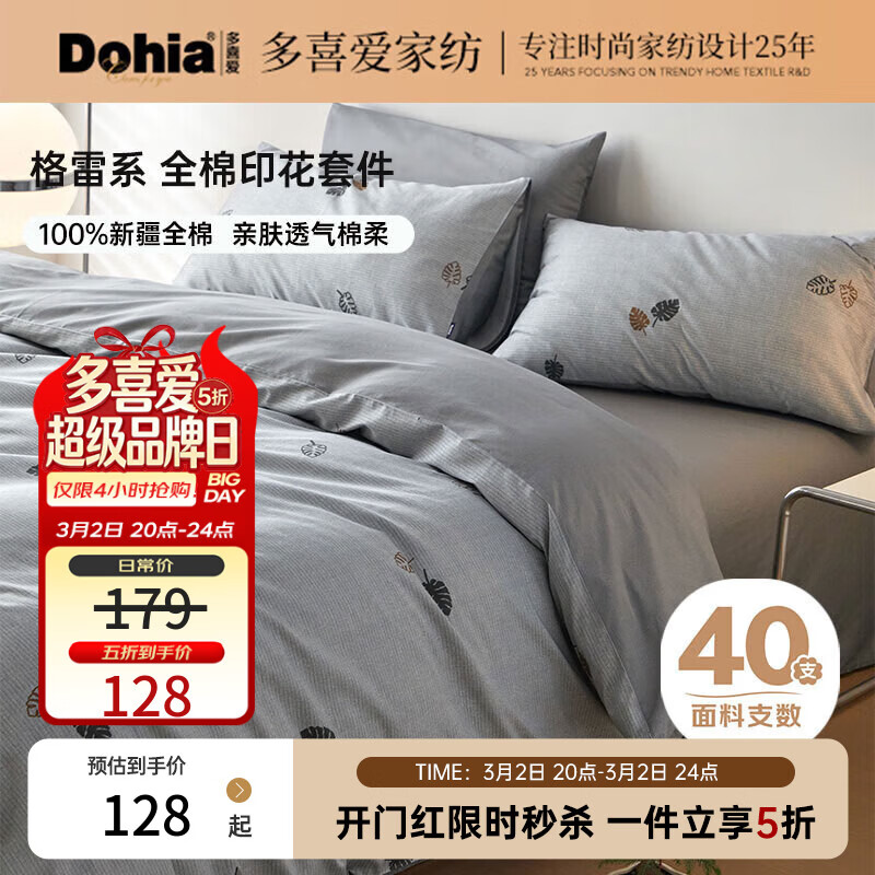 领5折券 多喜爱全棉印花三件套 128亓起 多喜爱全棉亲肤三件套