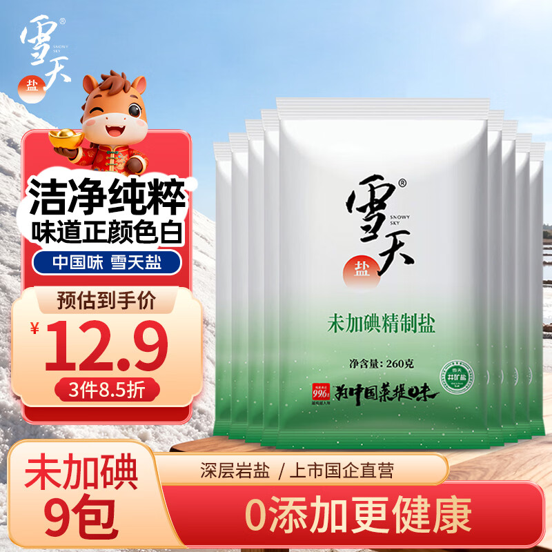 百亿补贴-频道专享(需从app进会场加购) 雪天精制盐260g*9未加碘