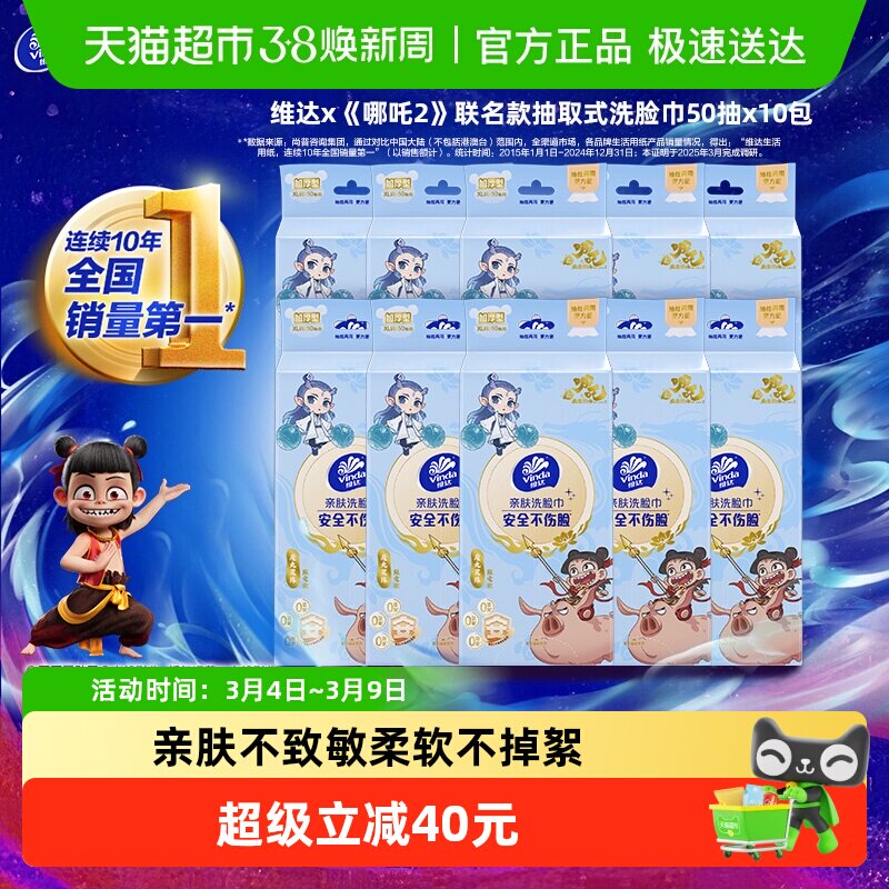 维达哪吒2联名款抽取式加厚洗脸巾50抽10包