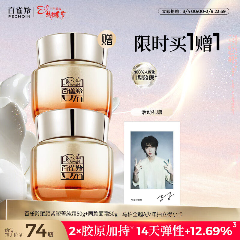先领100-45补贴券 百雀羚 胶原抗皱面霜50g*2瓶 凑单任选1件