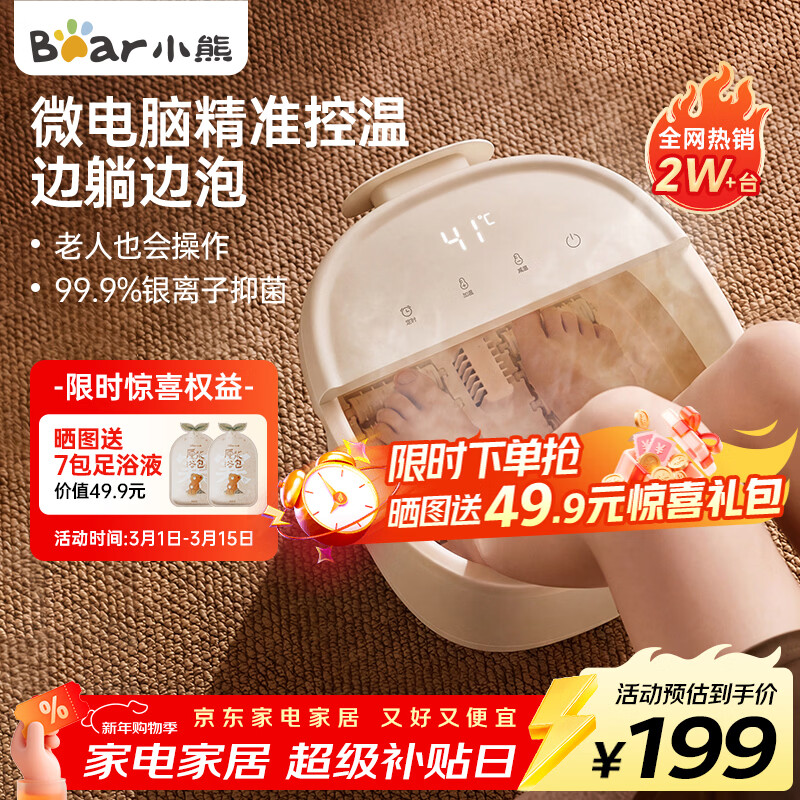 小熊 养生按摩足浴盆泡脚桶 98亓,养生好物 精准控温 *倾斜底盘 还可