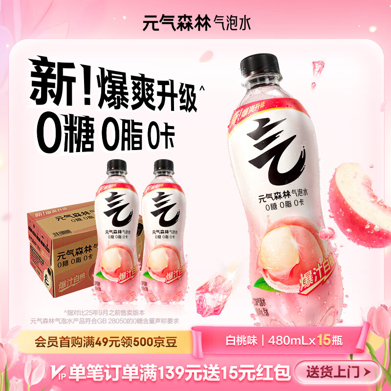 先领59-10补贴券 元气森林 气泡水480ml*15瓶 52.9亓,