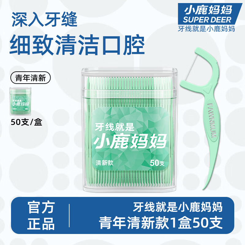 小鹿妈妈清新kuan牙线棒1桶50支 砸8奍2首单0