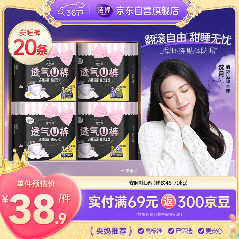 洁婷 裤型卫生巾安睡裤经期用 L码20条