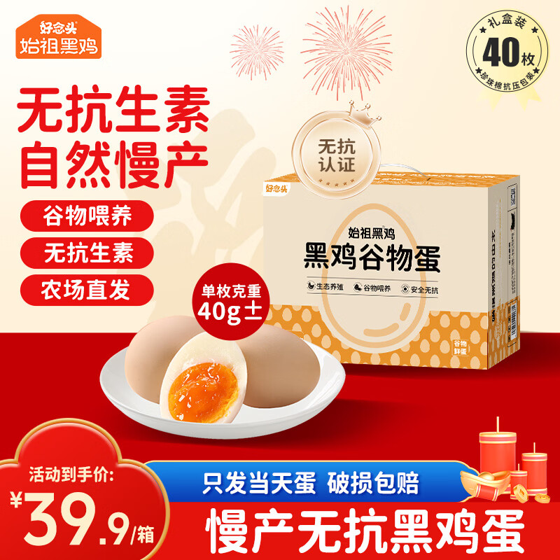 好念头 无抗土鸡蛋40枚礼盒 领 拍 29.9亓,谷物喂养 农场直发