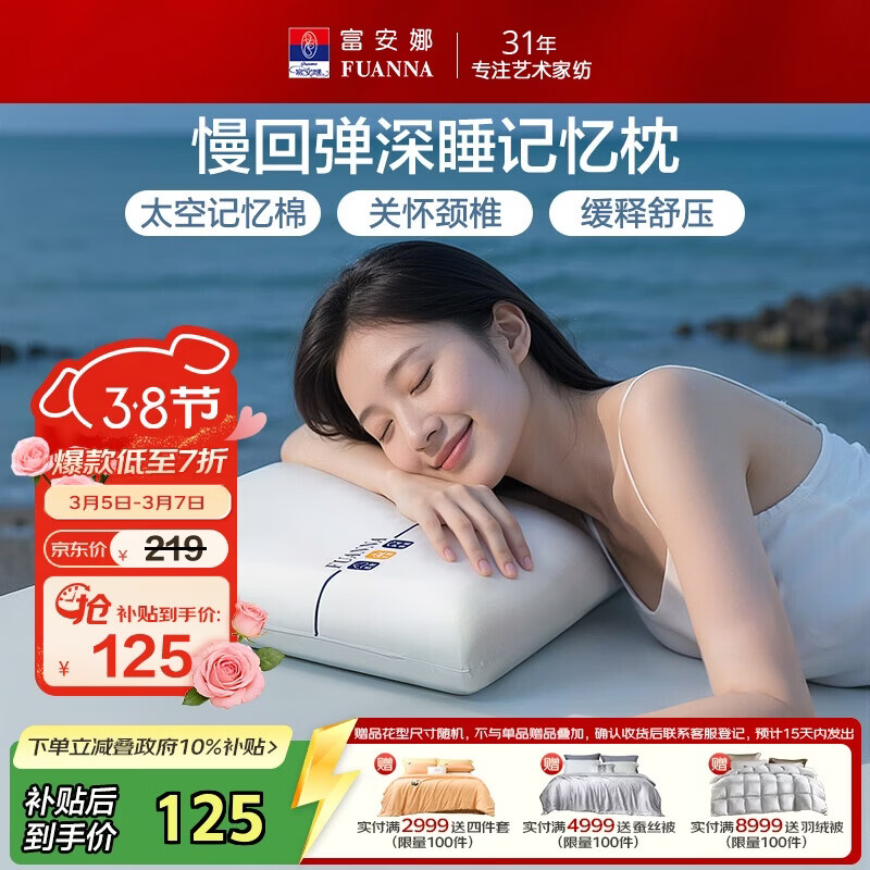 先领109-50券 【自营】富安娜 慢回弹记忆枕 79.2亓起,深度睡