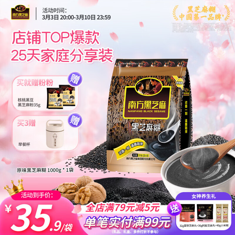 南方黑芝麻 原味黑芝麻糊1kg 29.9亓,赠芝麻粉35g*2包 *线下