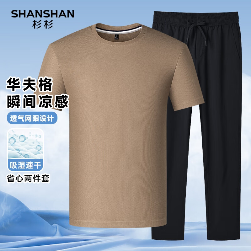 Plus先领200-25补贴券 杉杉 男士短袖T恤 长裤套装 plu