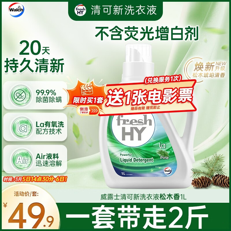 【自营】威露士 松木香洗衣液1L 49.9亓 运费,plus无限包邮 *