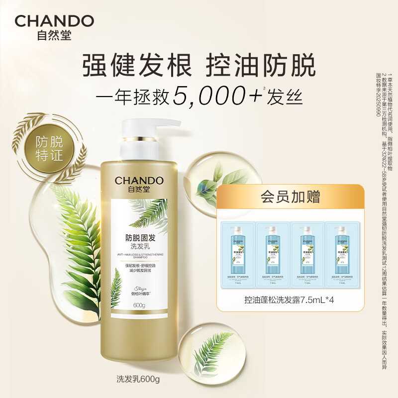 先加入店铺会员享赠品 再领49-20补贴券 自然堂 防脱固发洗发水60