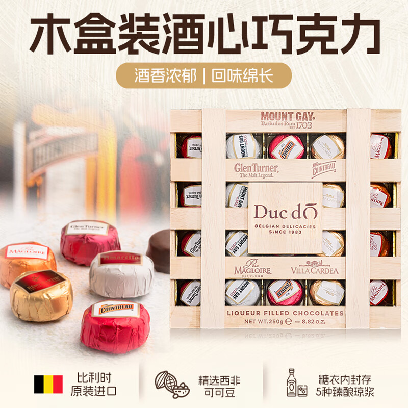 得多酒心巧克力小木盒 250g 5味20粒 学生价凑后34.22 湊
