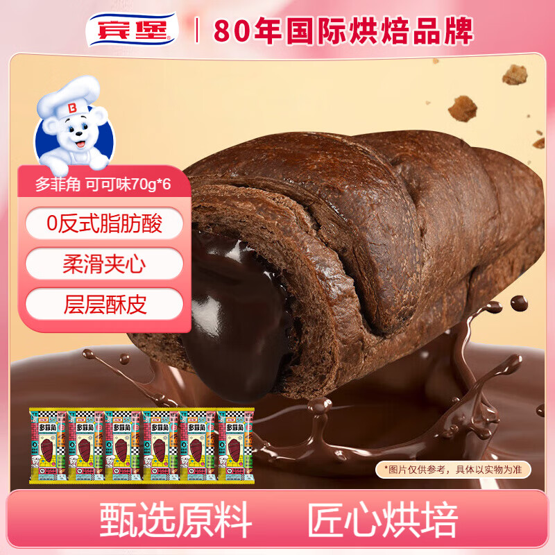 宾堡 多菲角夹心牛角面包 可可味70g/袋*6,首购2李金,7.15