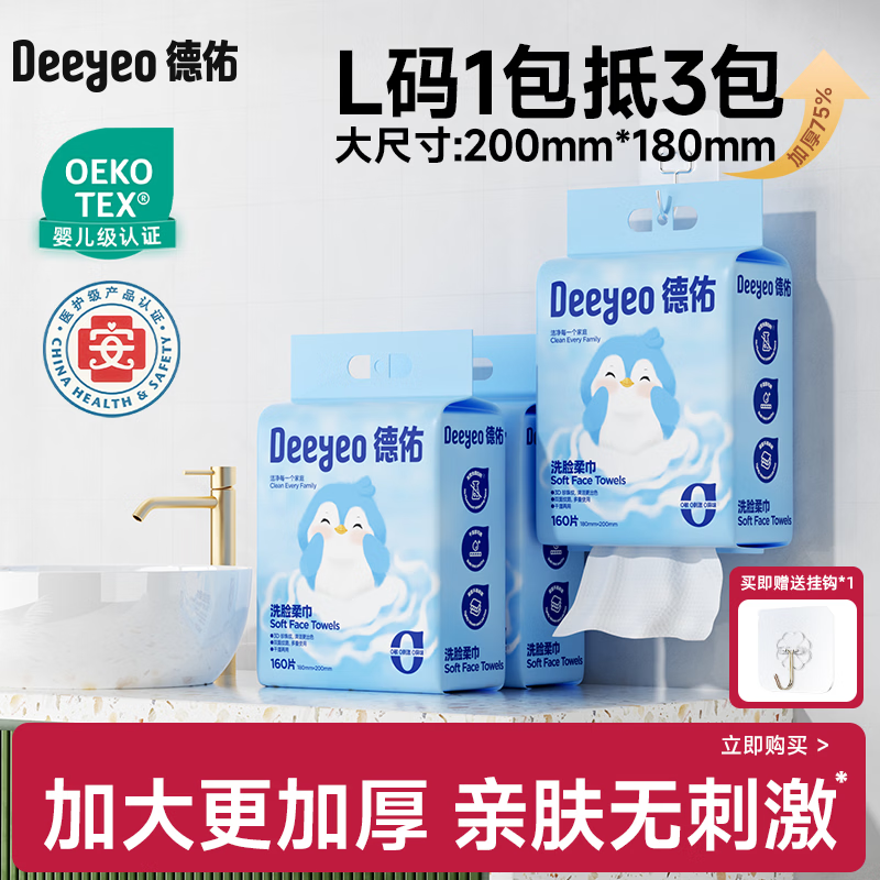 先领200-20补贴券 44.9 悬挂洗脸巾160抽*3提 47.6