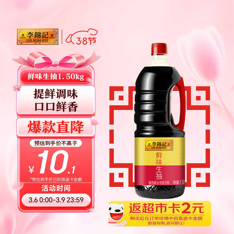 百亿补贴-加倍补(需从app进会场加购) 李锦记 鲜味生抽1.5kg