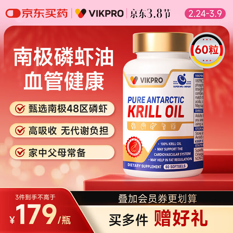 Plus先领2补帖卷 vikpro 南极磷虾油500mg60粒 凑単