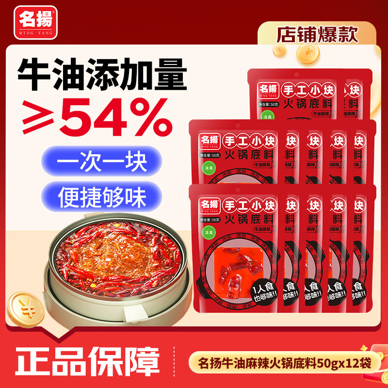 名扬 牛油火锅底料50g*12袋 39.8亓自营包邮,折3.3亓/袋 *