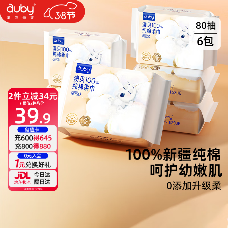 澳贝(auby)棉柔巾80抽6包