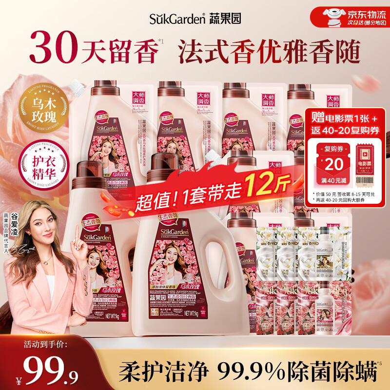 蔬果园 大师香氛洗衣液12斤 109亓自营包邮,赠20亓补帖 *下単再赠