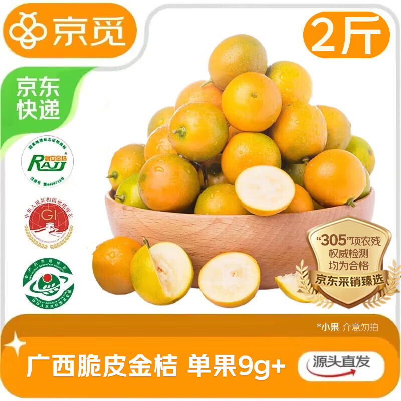 京觅 广西融安脆蜜金桔净2斤 15.9亓自营包邮,单果9g *京采直发