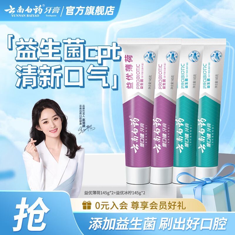 先加入店铺会员 再领80-38卷 云南白药 益生菌牙膏145g*4支
