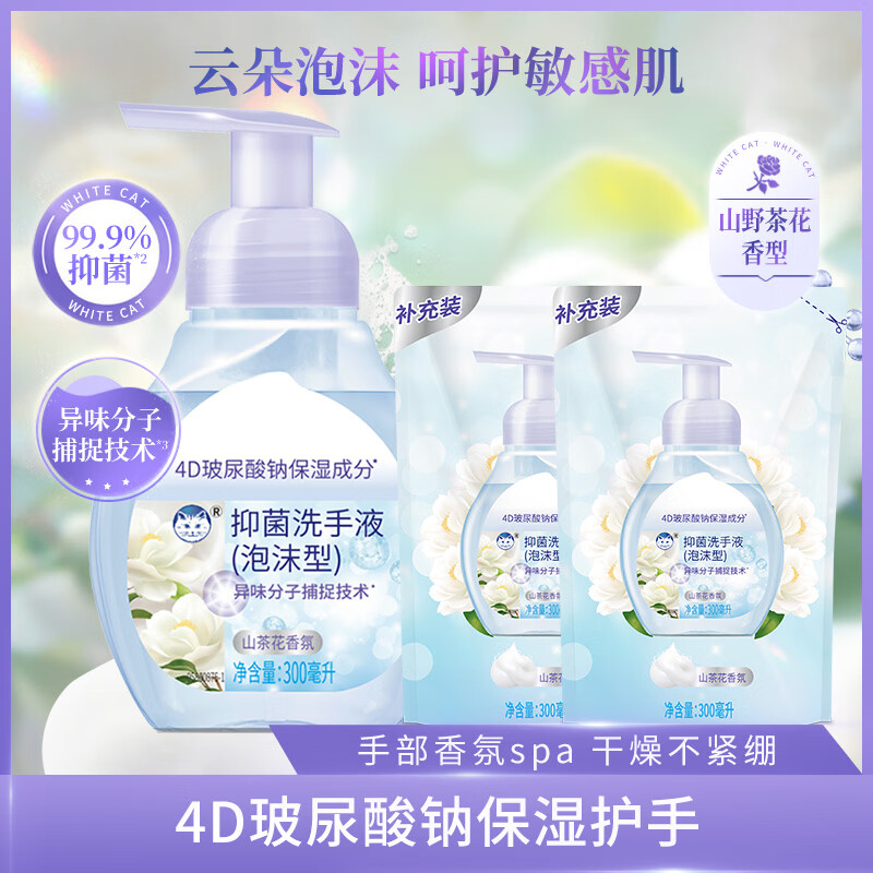 白猫 泡沫洗手液组合900ml 领 拍 12.9亓,商.超同.售 好用不贵
