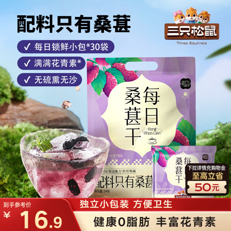 三只松鼠每日桑葚干240g,8.9
