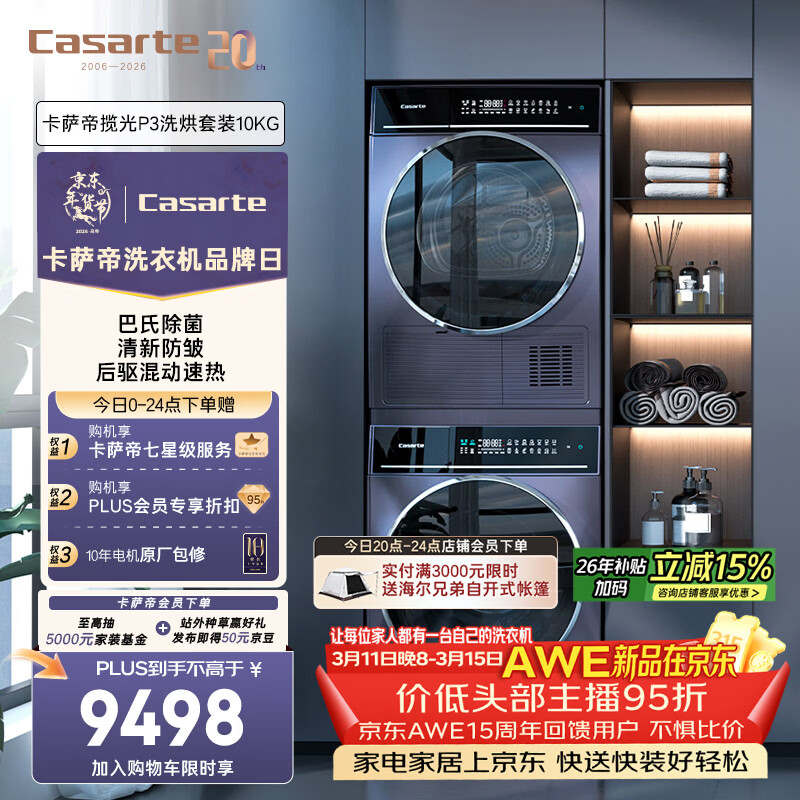 局部地区2000多 卡萨帝 (Casarte)揽光P3洗烘套装 10KG