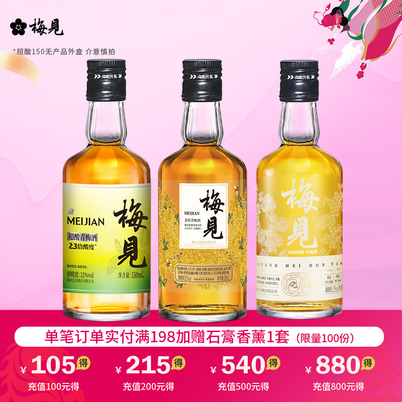 梅见 12度果酒组合150ml*3瓶 29.9亓,Plus到手付27.4