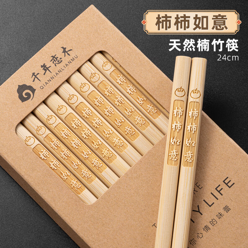 5.9 柿柿如意天然竹楠筷10双 8.9 烫金合金筷 年年有鱼10双