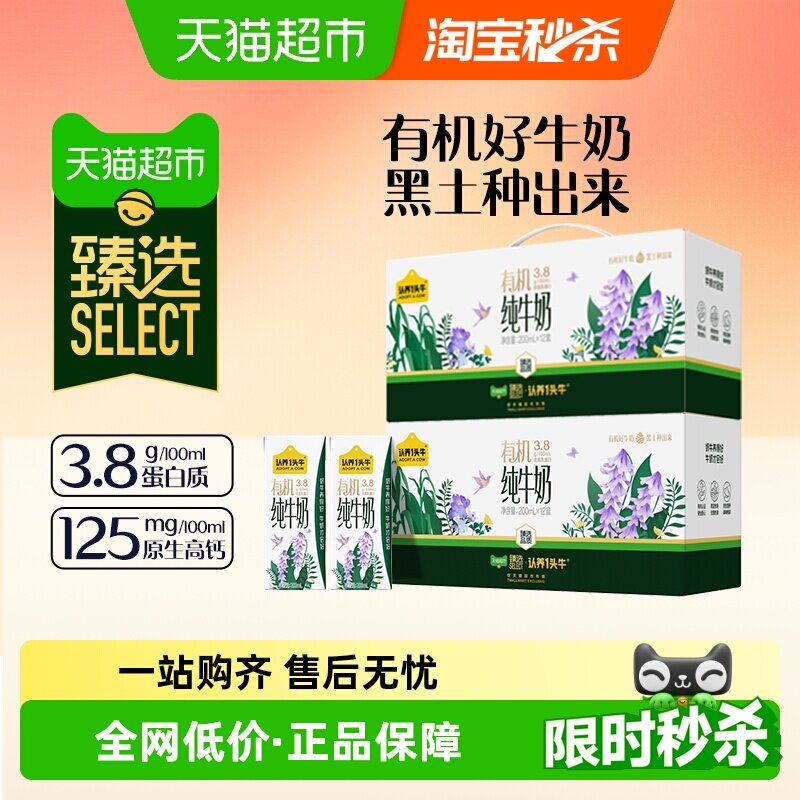 认养一头牛有机纯牛奶12盒*2箱