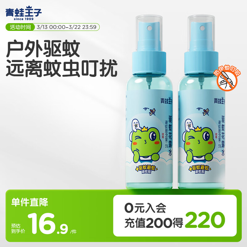 领15-3券拍下12.9亓 青蛙王子驱蚊花露水100ml*2支