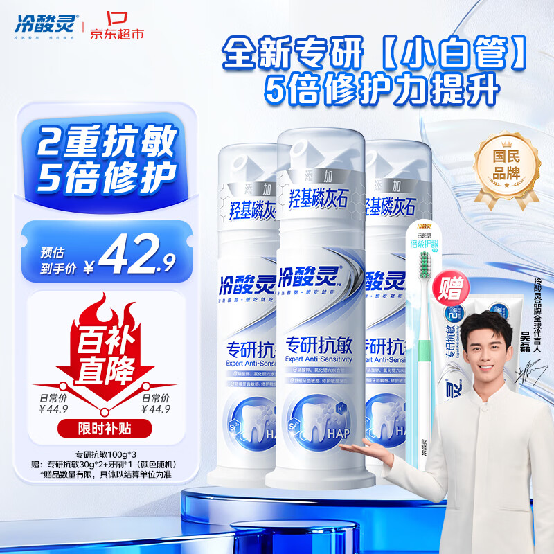 【自营】抗敏泵式牙膏100g*3支 39.9亓 U,Plus37.9亓包