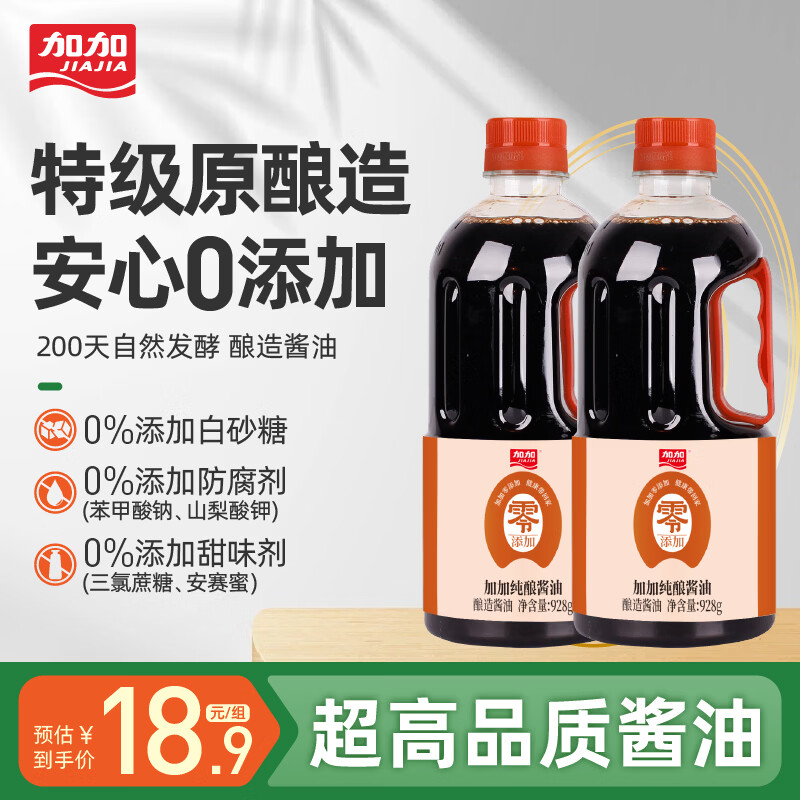 加加 厨房纯酿酱油928g*2瓶 15.9亓,商.超同.售 健康有味