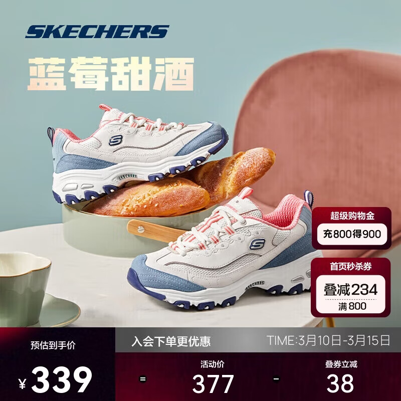 先页面领5折补帖卷 斯凯奇 奶茶熊老爹休闲鞋女 斯凯奇 小白熊海军蓝休