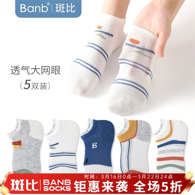 先页面领5折补帖卷 斑比 儿童夏季薄款棉袜子5双 任选1款19.9亓